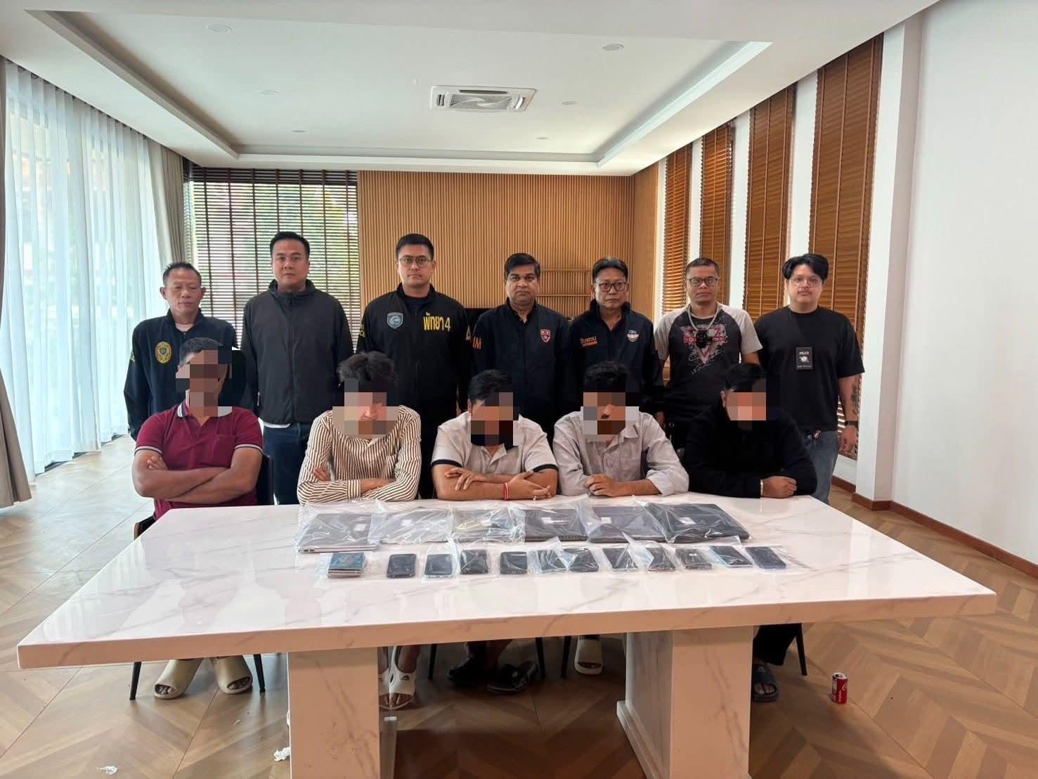 Aufgrund eines Hinweises eines Informanten, dass eine Gruppe von Ausländern ein gemietetes Haus für nicht genehmigte Arbeiten nutzte, führten Beamte der Polizei von Pattaya, der Touristenpolizei von Pattaya, der Einwanderungsbehörde von Pattaya und der Polizeistation Nong Prue eine gemeinsame Inspektion in einem Anwesen im Dorf 9, Unterbezirk Pong, durch.