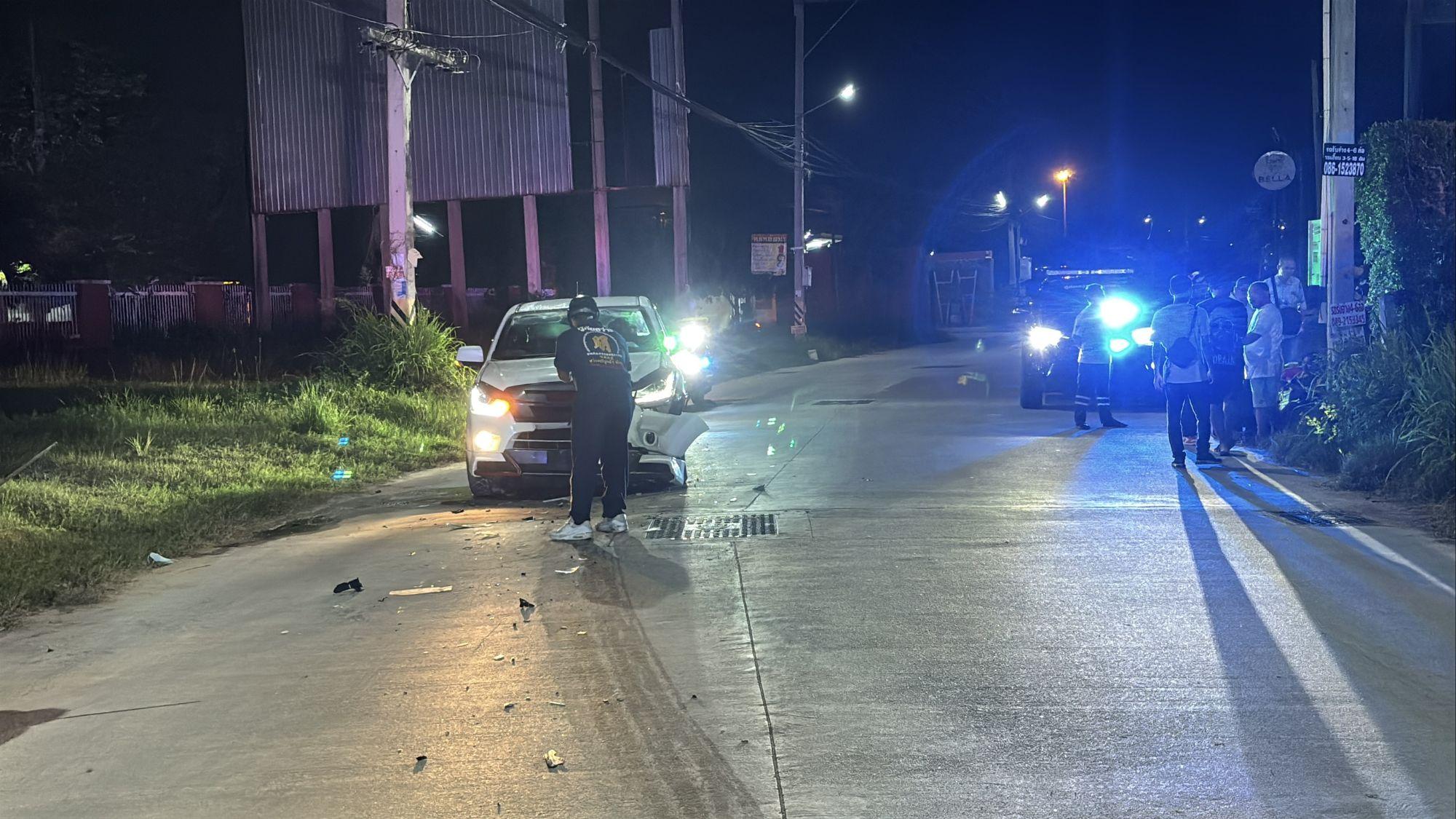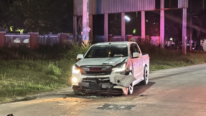 Polizeileutnants der Polizeiwache Nongprue erhielten den Bericht und eilten in Abstimmung mit der Rettungseinheit Sawang Boriboon Thammasathan in Pattaya zum Unfallort. Bei ihrer Ankunft fanden die Einsatzkräfte einen weißen Isuzu D-Max Pickup vor, der die rechte Spur blockierte. Seine Frontpartie war schwer beschädigt. Der Fahrer, ein etwa 40-jähriger Thailänder, der seinen Namen gegenüber den Medien nicht nennen wollte, erlitt leichte Verletzungen. Eine Beifahrerin im Pickup erlitt durch den Aufprall Brustschmerzen.