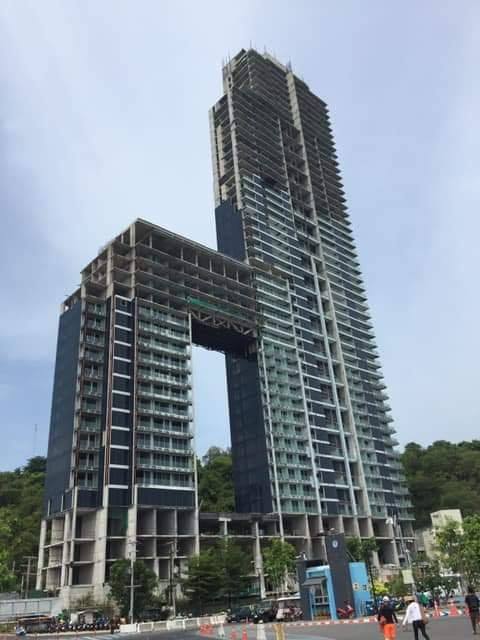 - Es handelt sich um ein unfertiges Wohn-/Condo-Projekt mit 53 Stockwerken (ursprünglich geplant bis 57) in der Nähe des Bali Hai Piers in Süd-Pattaya.