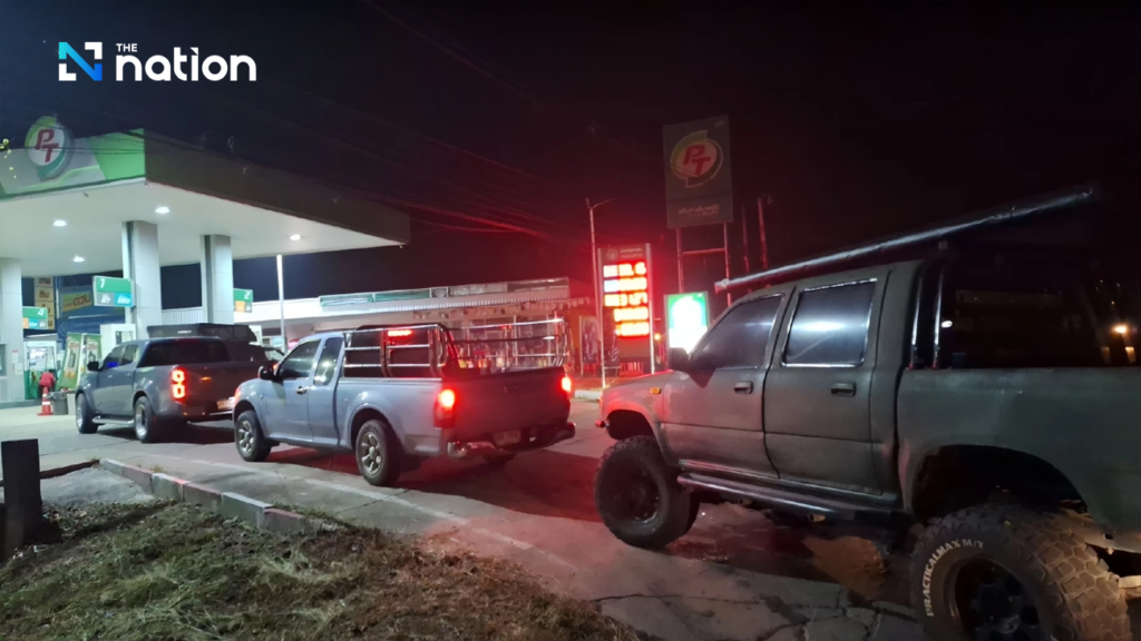 Zwischen 5 Uhr und 6.30 Uhr am Dienstag (17. März) packten Autofahrer, landwirtschaftliche Fahrzeugnutzer und Landwirte aus der Gegend und den nahe gelegenen Provinzen die PT-Tankstelle in Sra Jang, Bang Rachan, Sing Buri, um ihre Fahrzeuge und Jerrydosen mit Treibstoff zu tanken.
