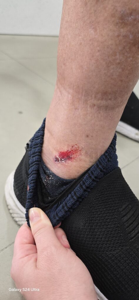 Die Versicherung des Fahrers war sofort vor Ort. Man fotografierte meine Verletzungen, nachdem er das Video mit dem Fahrer begutachtet hatte.